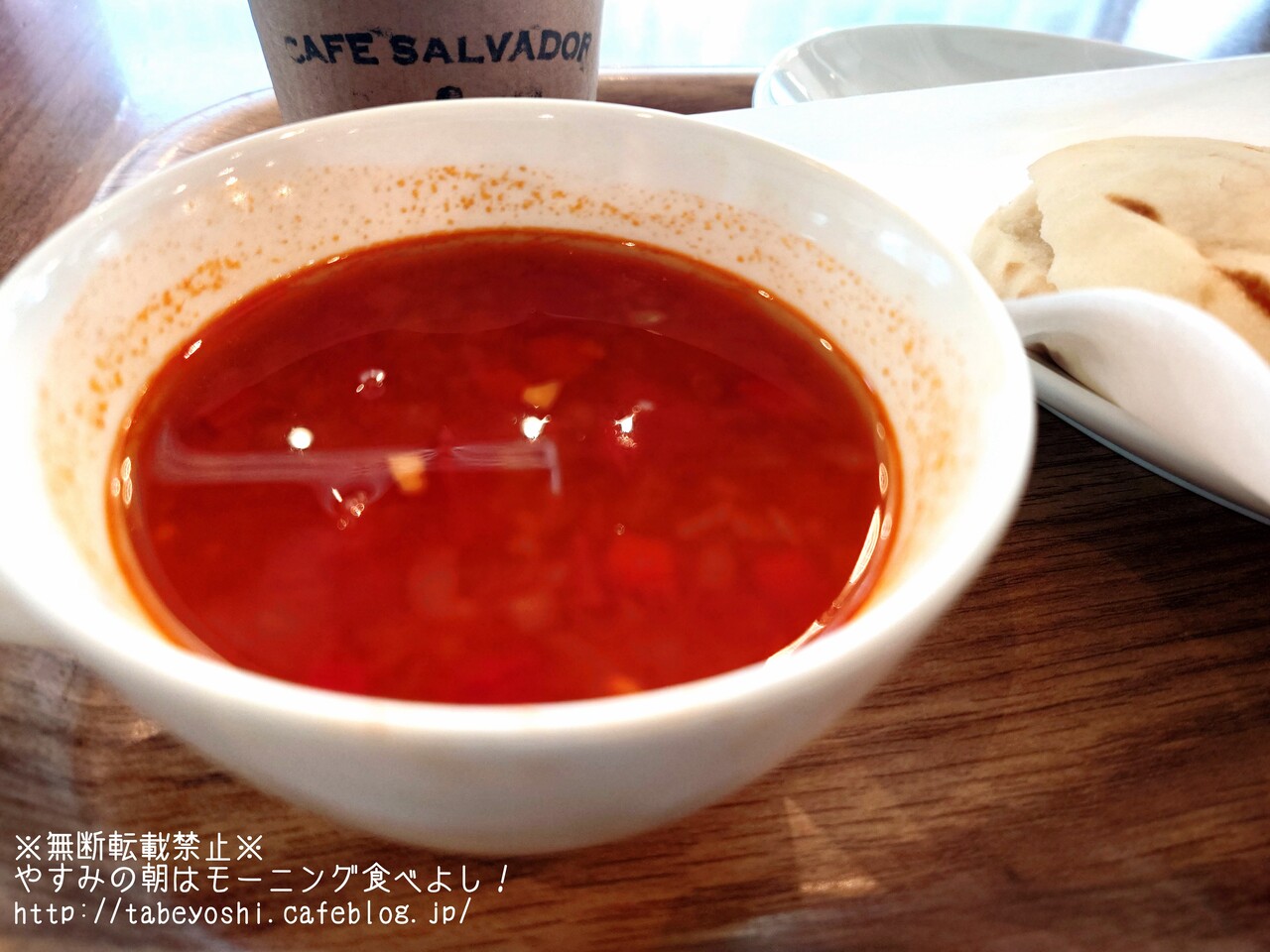 トマトの酸味で目が覚める、あったかスープ。これまた具沢山でこだわりをかんじます。