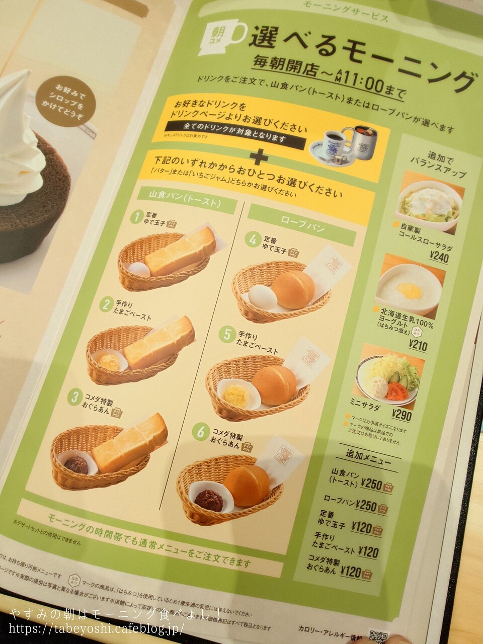 選べるモーニング①(0円)+コメダブレンド(560円)