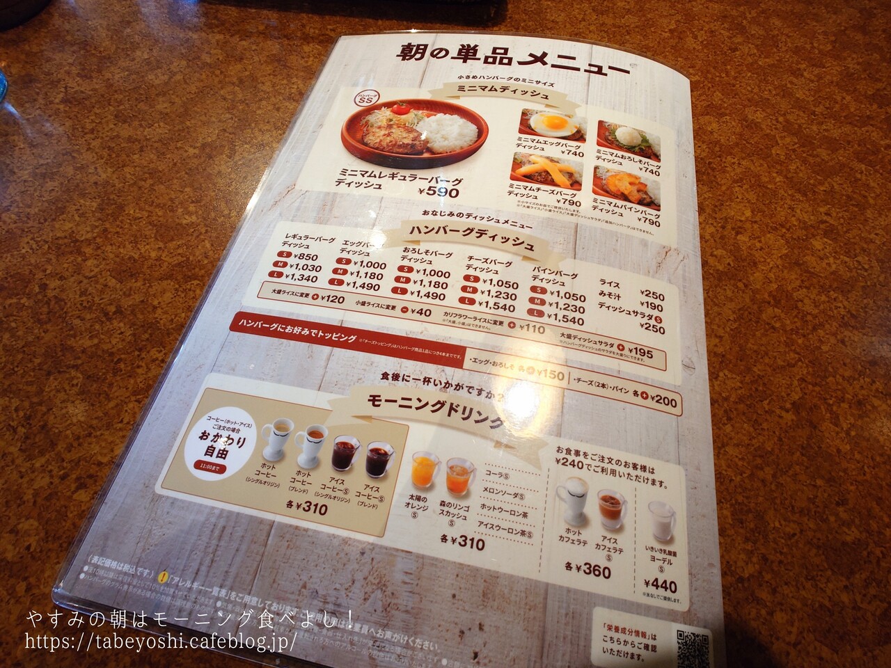 11時までなのも嬉しいですね。10時まではモーニングだけなのですが、それ以降はグランドメニューも頼めるっぽいです。店舗によるかもなのでお確かめください。