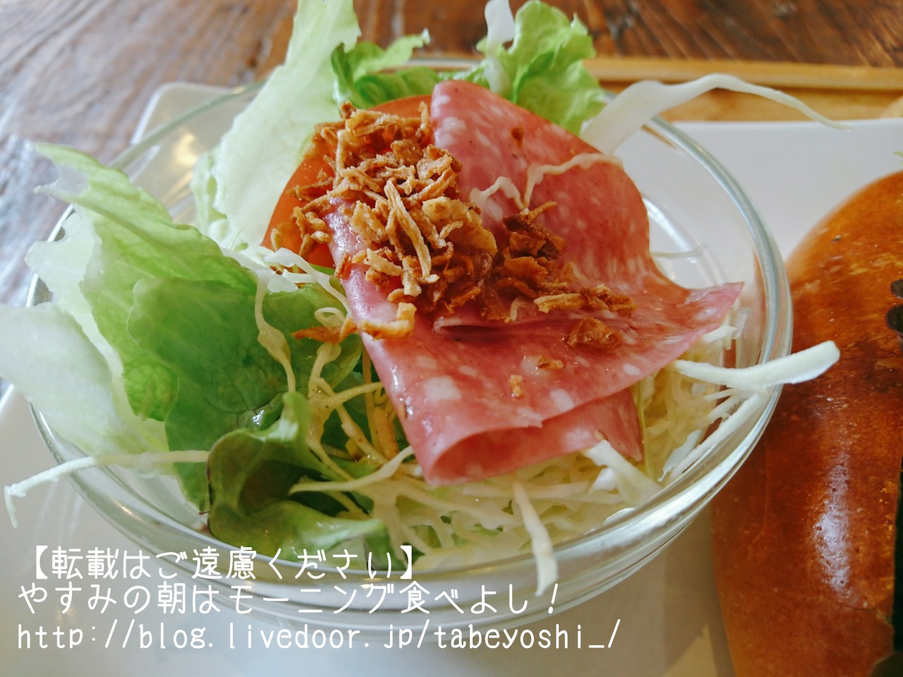 ハムとかフライドオニオンがちょっと乗ってるだけで、特別な朝ってかんじがします。